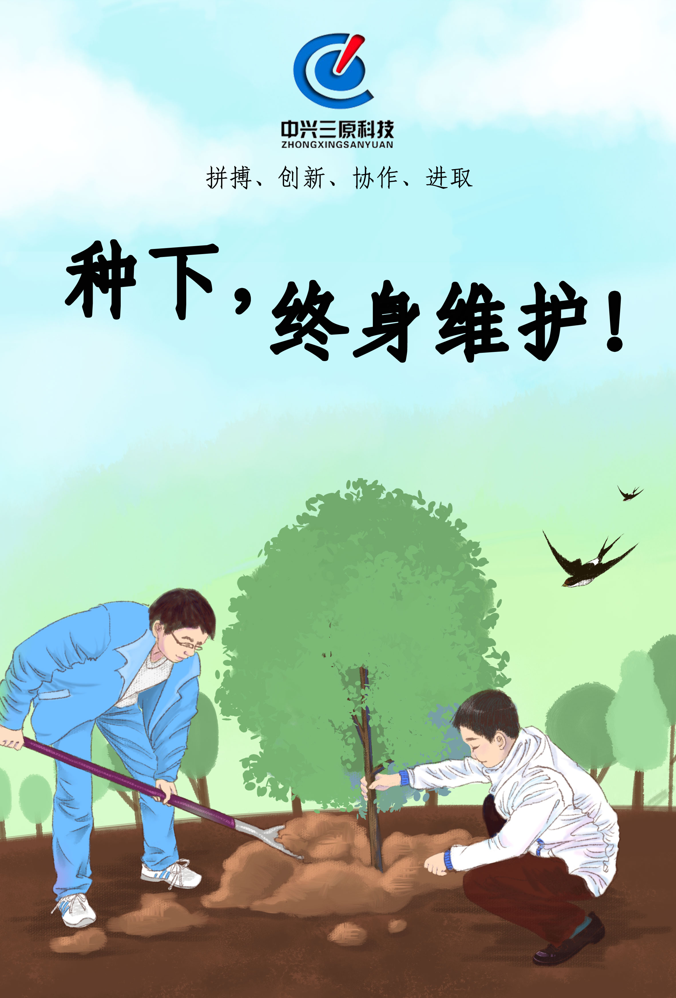 拼搏、創(chuàng)新、協(xié)作、進(jìn)取,種下,終身維護(hù)! |